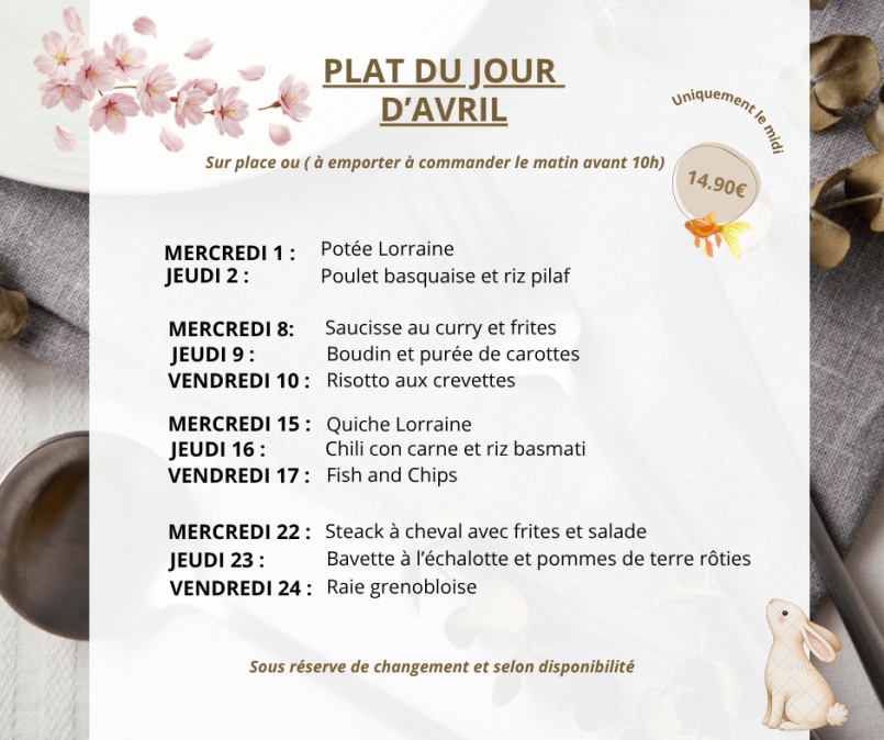 À la carte Si vous êtes pressé, nous vous recommandons de passer commande pour vos plats avant 11h afin d’être servi dès votre arrivée.Tous nos plats sont également disponibles à emporter. J’aime chargement…